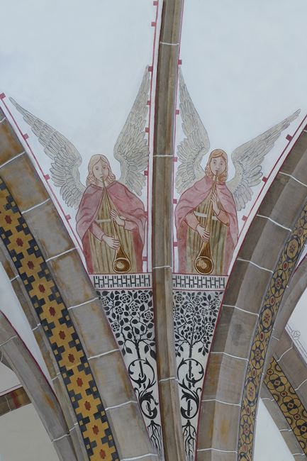 Bad Driburg, St. Peter und Paul, Kirchenmalerei, Engel im Zwickel |