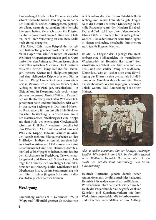 November 2017: Leben „auf der äußersten Grenze. Rautzenberg ist im westfälischen Hagen aufgewachsen, wurde in Wiedenbrück ausgebildet und hat etwa 40 Jahre in der Region Köln gelebt. Sein Leben und seine Werke werden nun erstmalig ausführlich vorgestellt und in 100 brillanten farbigen Abbildungen gezeigt. Rautzenberg arbeitete ausschließlich für (katholische) Kirchen und Klöster und entwickelte einen sehr ausdrucksvollen Stil, an dem er unabhängig von Kunst-Tendenzen festhielt. Schon als junger Künstler sehr erfolgreich, ist er heute weitgehend vergessen. Kein Künstlerlexikon nennt ihn, und sogar über sein Leben war bisher fast nichts bekannt. Aber er hat in mehr als 70 Kirchen seine künstlerischen Spuren hinterlassen, darunter in etwa 40 Kirchen des Erzbistums Paderborn. Allein in Dortmund kann man seine Werke in 12 Gotteshäusern sehen. Autoren: |